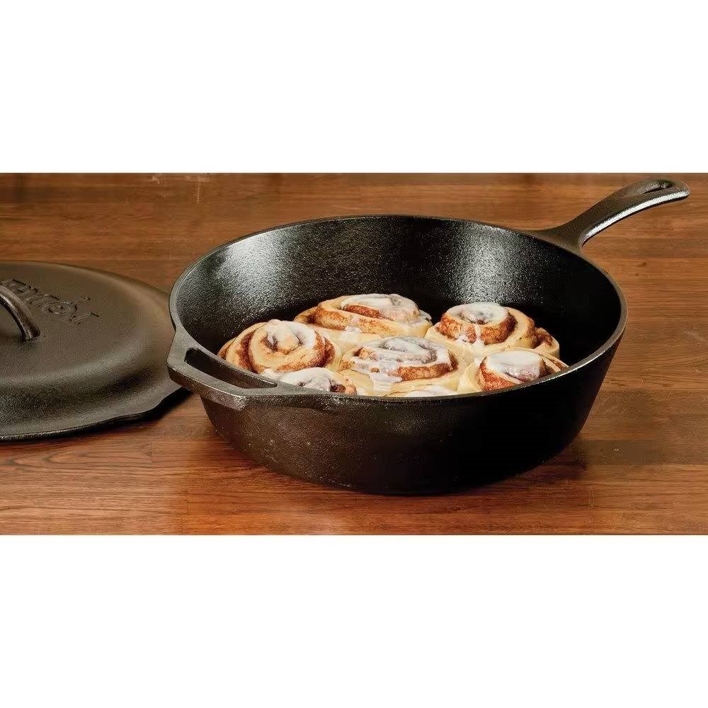 12-inch Round Cast Iron Deep Skillet with Lid Pre-Seasoned and Made in the USA